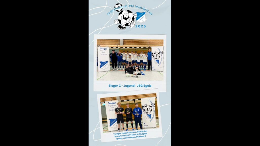 Das Turnier fing am späten Freitagnachmittag mit den C-Jugendlichen an. Bereits ab Mittag begann für viele Helfer/innen in der Halle Moorhusen der KiMa Wandercup. Der Aufbau musste vor Turnierstart abgeschlossen sein. Imbisstand, Tombola, Kuchen- und Getränke mussten vorbereitet werden uvm. Um 17:30 Uhr war es dann soweit. Das C-Jugendturnier konnte starten und überzeugte mit tollen Spielen und einigen Toren. Im Finale konnten sich die starken Jungs der JSG Egels gegen die JFV Eintracht Emden II mit 2-0 durchsetzen. Als fleißigster Torschütze wusste Lukas Remmers von der JSG Norden zu überzeugen. Lennart Freimuth von der JSG Egels überzeugte die Turnierleitung als bester Torwart und Jannis Hattox von der JSG Esens II wurde als bester Spieler geehrt.