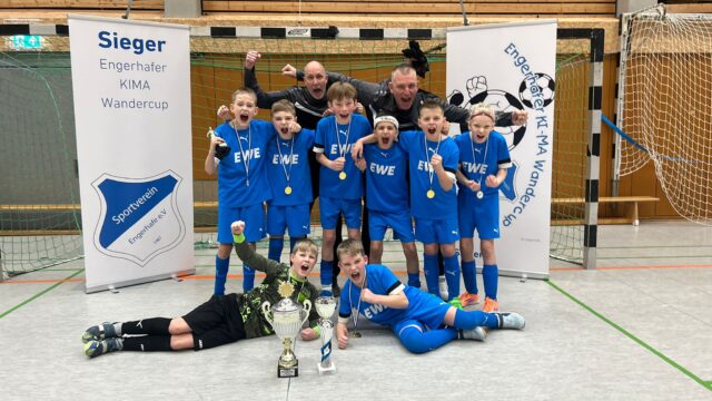 Auch die 16te Ausgabe des Engerhafer KiMa Wandercup ist Geschichte. Erschöpft von der langen Vorbereitungsphase und drei Tagen Budenzauber ziehen die Verantwortlichen des SV Engerhafe ein positives Fazit. Es hat alles geklappt. Alle Turniere waren voll besetzt, der Run auf Startplätze war ungebrochen, alle Turniere waren nach kurzer Zeit voll belegt und es waren mehr Vereine auf der Warteliste wie überhaupt teilgenommen haben. Toll war auch die große Hilfe vieler Helfer/innen des Vereins, sowie die tolle Tombola während der Turniere mit den Losverkäufern Asterix und Obelix.