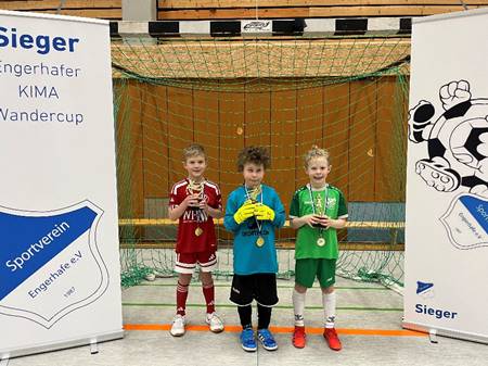 Am Sonntag dann das mit Spannung erwartetet Turnier der E1-Jugend. In einem sehr gut besetzten Turnier konnte sich am Ende der SV Engerhafe die Krone aufsetzen und feierte doppelt, dass mit Dieke Hinrichs auch noch der beste Spieler vom Turniersieger kam. Jonah Lange vom FSV Jever wurde Torschützenkönig und Tildo Sasssen vom TuS Esens als beste Torhüterin geehrt. Tolle Spiele und ein 2-0 Erfolg über den SV Hage brachte die Gastgeber zum verdienten Turniersieg. Der TuS Esens zeigte wieder einmal, wie „Fair Play“ geht und korrigierte beim 1-0 des SV Hage in der Vorrunde den Schiedsrichter, der nicht gesehen hatte, dass der Ball über die Torlinie war. Gleichbedeutend war das auch das Vorrundenaus für den TuS Esens, was noch einmal zusätzlich die tolle Geste vom Trainer Jannes Havemann unterstrich.