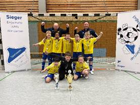 Direkt im Anschluss ging es dann mit den F Jugendlichen weiter. Trotz Schneefall und Glätte war nur eine Mannschaft kurzfristig abgesprungen, sodass mit neun Teams gespielt wurde. Tolle Leistungen zeigte auch der Gastgeber, für den es am Ende zu Platz vier reichte. Der TV Bunde sicherte sich am Ende den Turniersieg. Bester Spieler wurde Jarno Wilken vom VfB Münkeboe. Bester Keeper war Joris Kleide von der JSG Emden West und Youssef Hassan vom SV Engerhafe sicherte sich mit 11 Treffern die Torjägerkanone.